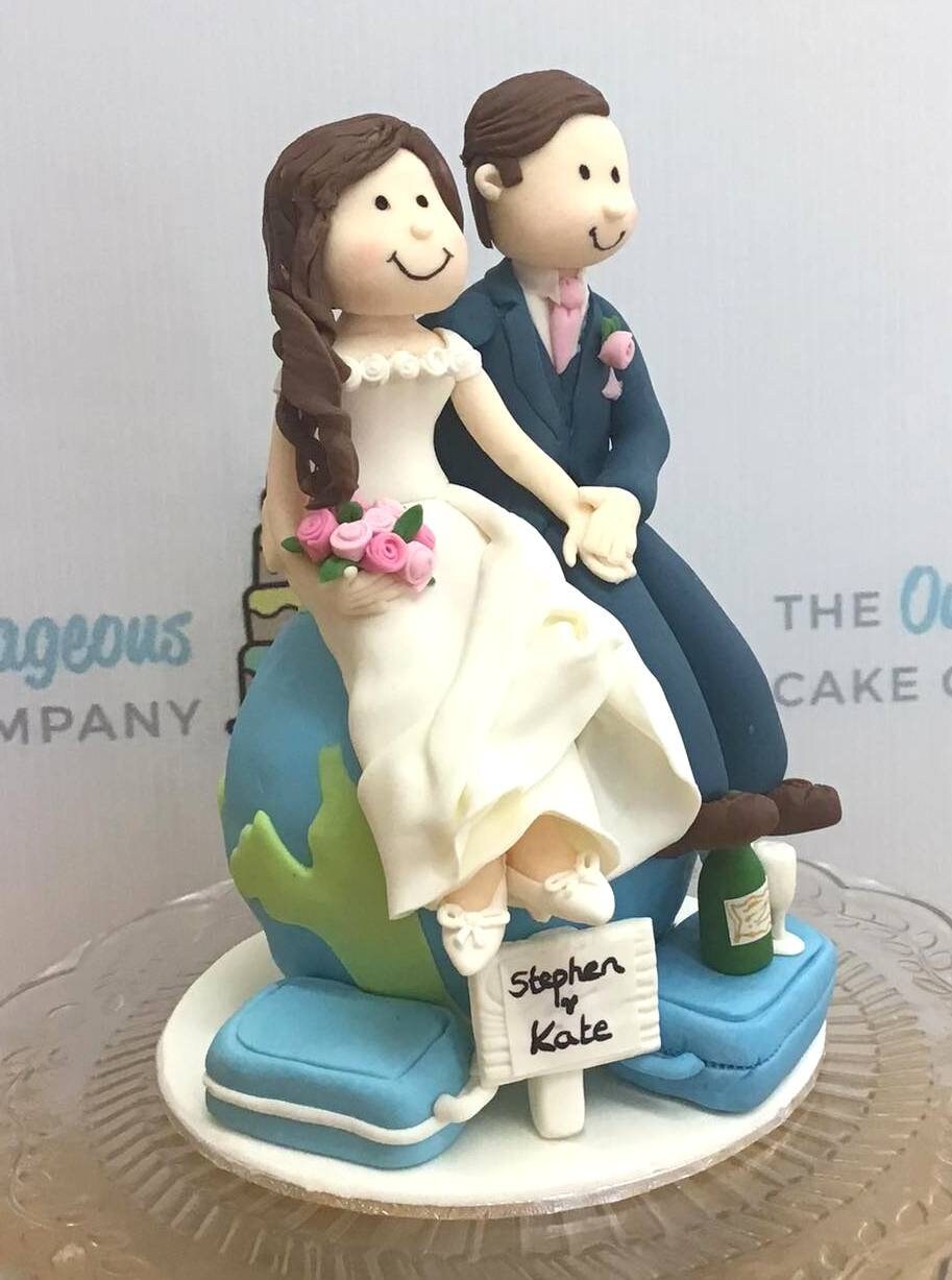 Handmade Sugar Fondant Wedding Bride & groom on a globe, Personalised to order